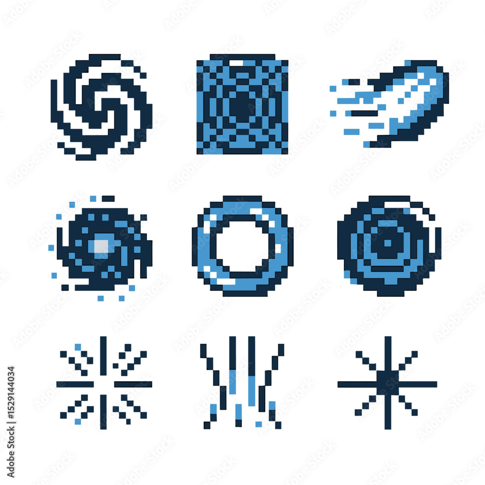 Stock-Vektorgrafik „Vortex Icon Set. Pixel art icon set of time vortex ...