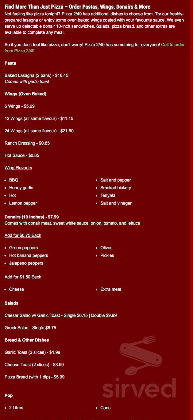 Menu at Pizza 2/49 pizzeria, Strathmore