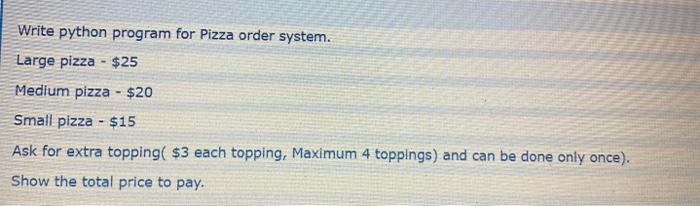 Solved Write python program for Pizza order system. Large | Chegg.com