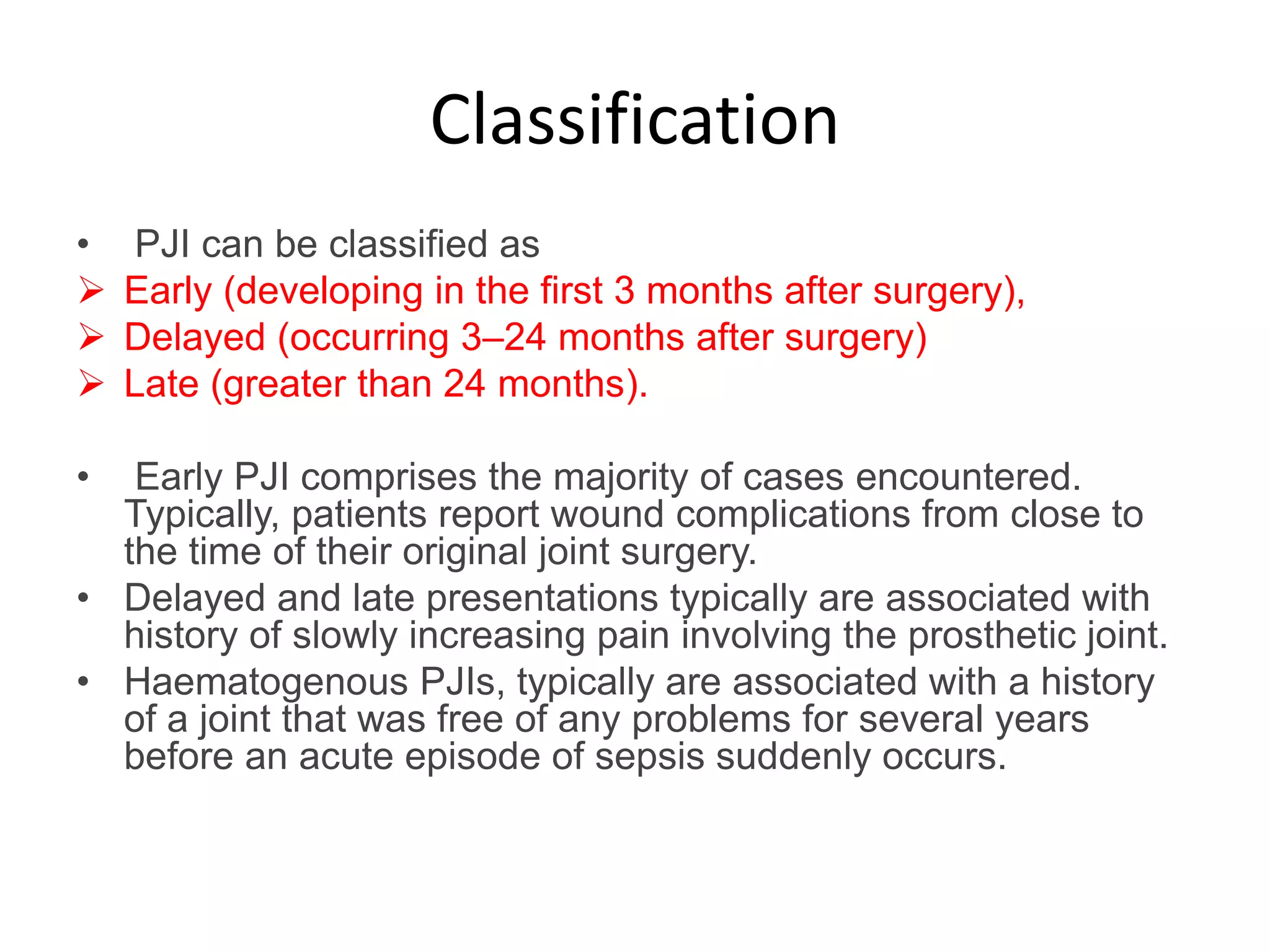 PJI CLASSIFICATION BASED ON THEIR ONSET | Download Table