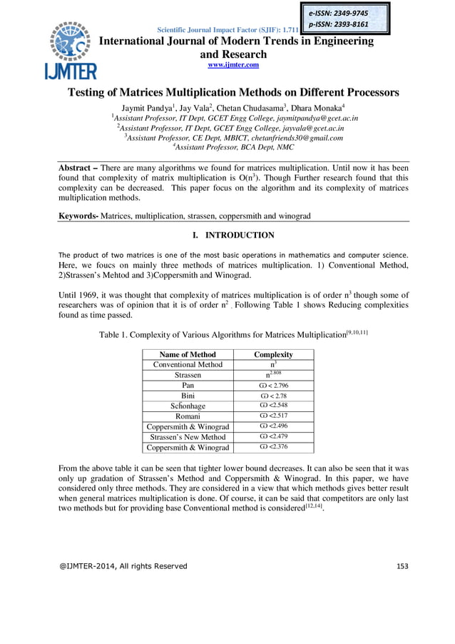 Testing of Matrices Multiplication Methods on Different Processors | PDF