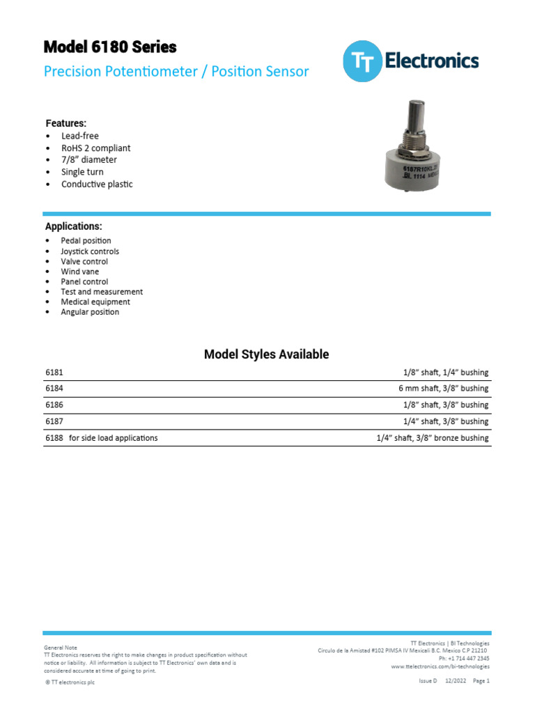 Precision Potentiometer / Position Sensor: Model 6180 Series | PDF ...