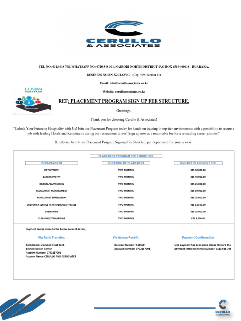 Fee Structure - Cerullo & Associates Placement Program - Year 2024 ...