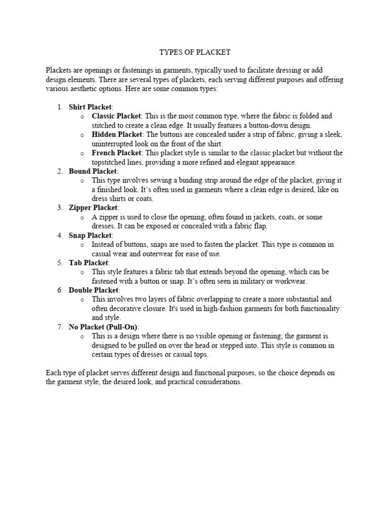 How Many Types Of Plackets Are There at Wiley Gunn blog