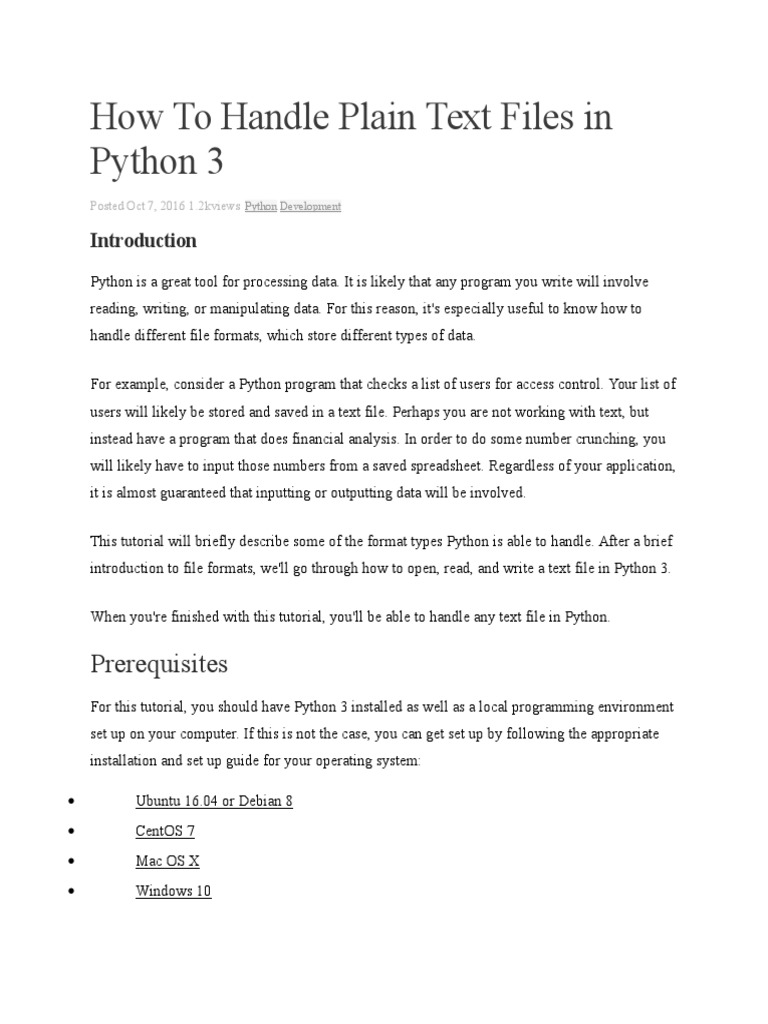 How To Handle Plain Text Files in Python 3.docx | Computer File | File ...