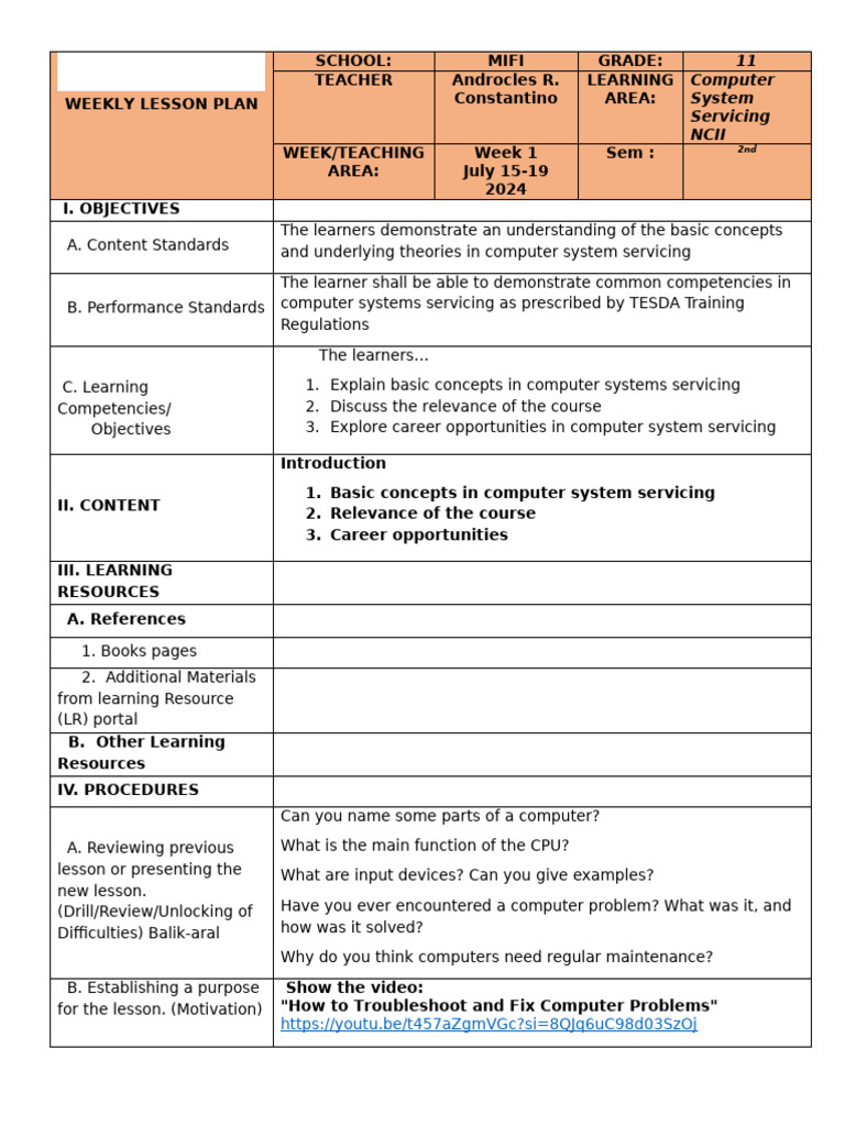 Lesson Plan in Tvl Css 12 Final 1.1 | PDF | Computer Science | Computing