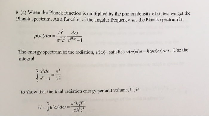 Solved When the Planck function is multiplied by the photon | Chegg.com