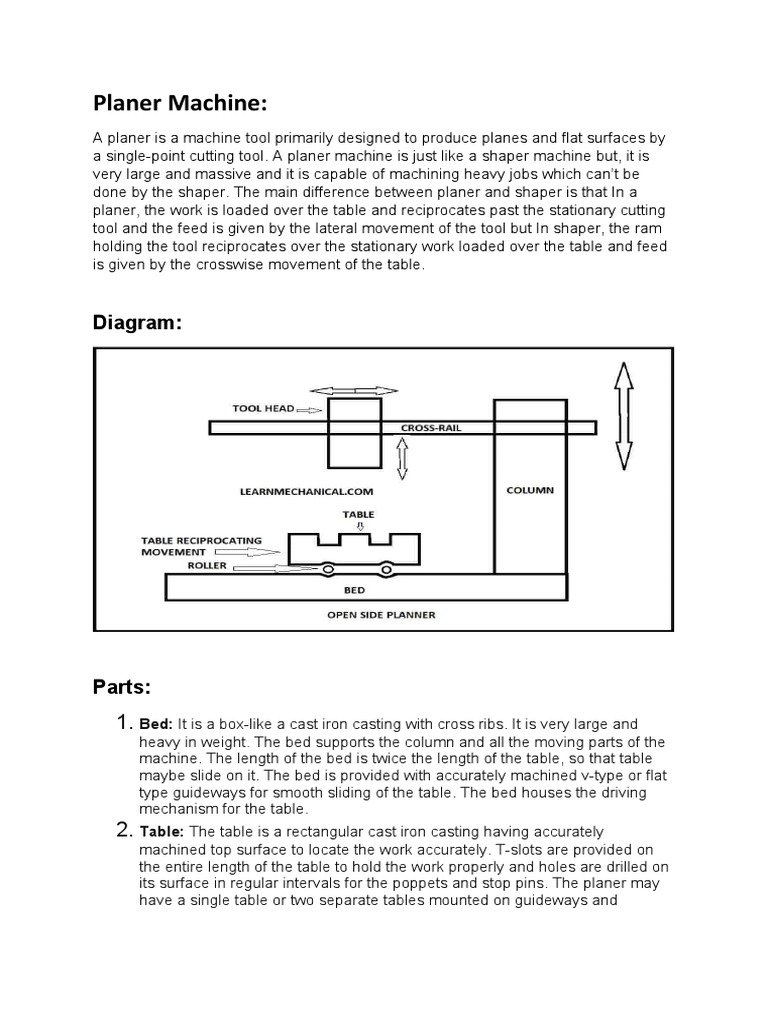 Planer Machine:: Diagram | Download Free PDF | Machining | Crafts