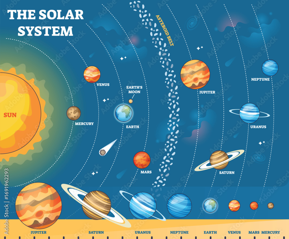 Diagram of our solar system with planets Stock Illustration | Adobe Stock