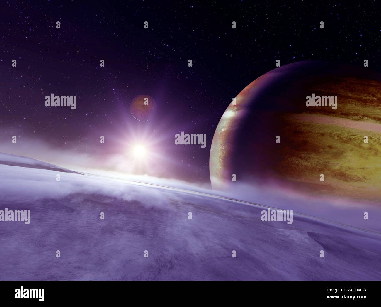 Alien planetary system. Computer artwork of a Jupiter-sized planet ...