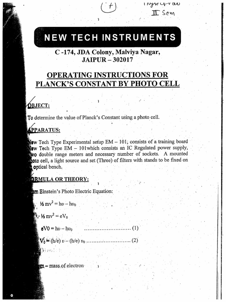 Planck Constant by Photo Cell | PDF