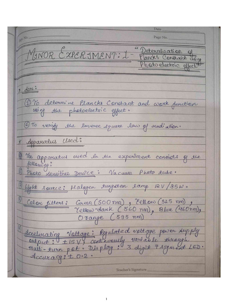 Determination of Plancks Constant Using The Photo | PDF | Photoelectric ...