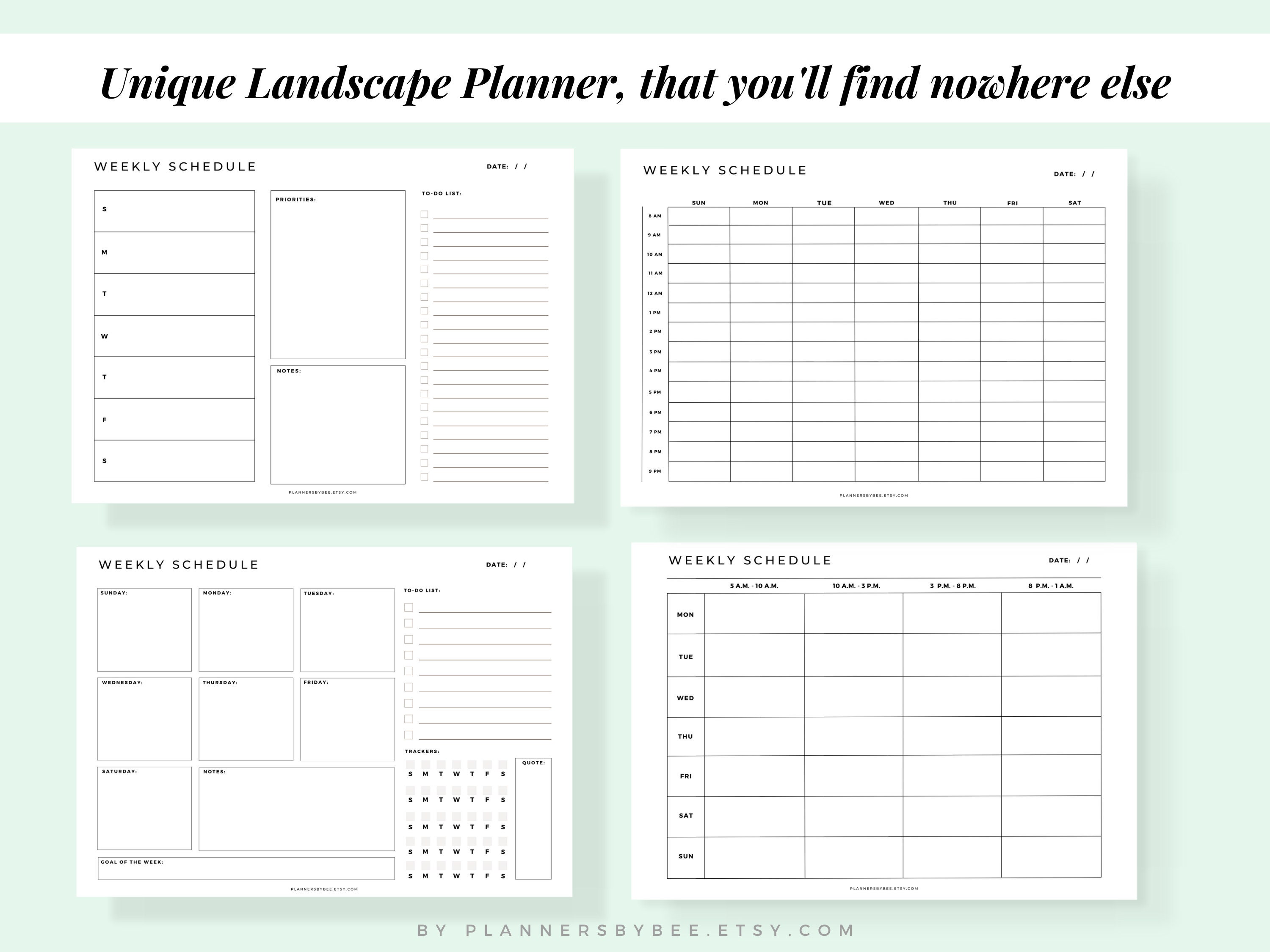 Landscape Weekly Planner Daily Planner Hourly Planner - Etsy