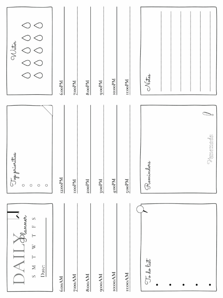 Daily Planner Template Landscape Handdrawn With Graphics | PDF