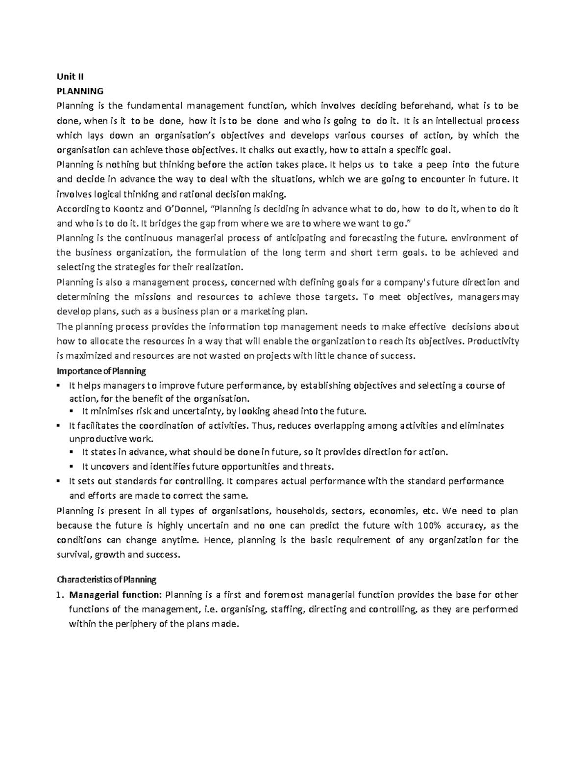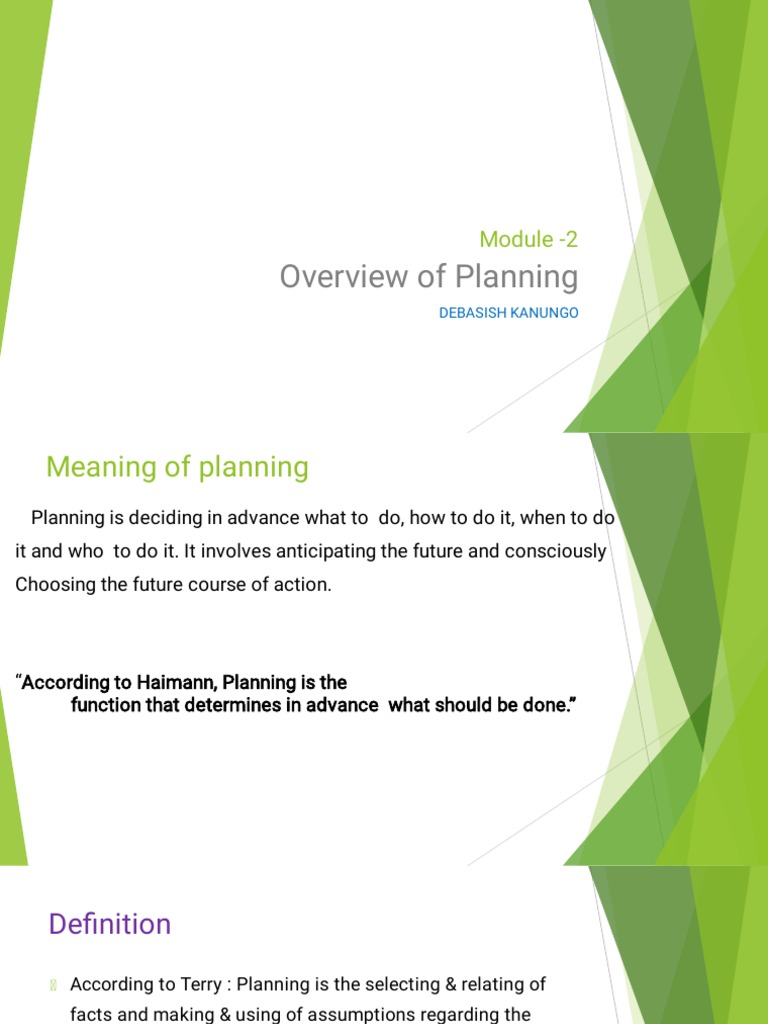 Planning 1 - Study notes - MODULE - 2 PLANNING MEANING: Planning helps ...