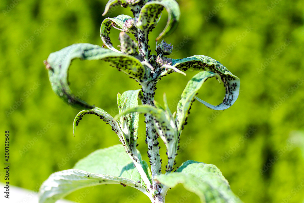 Plant infected by parasites, pests, insect infestation, in between ants ...