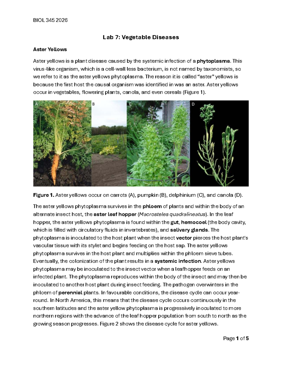 BIOL 345 2026 Lab 7: Aster Yellows & Late Blight in Vegetables - Studocu