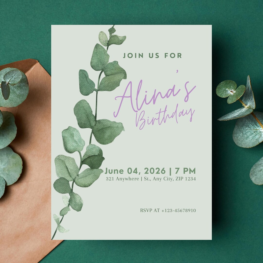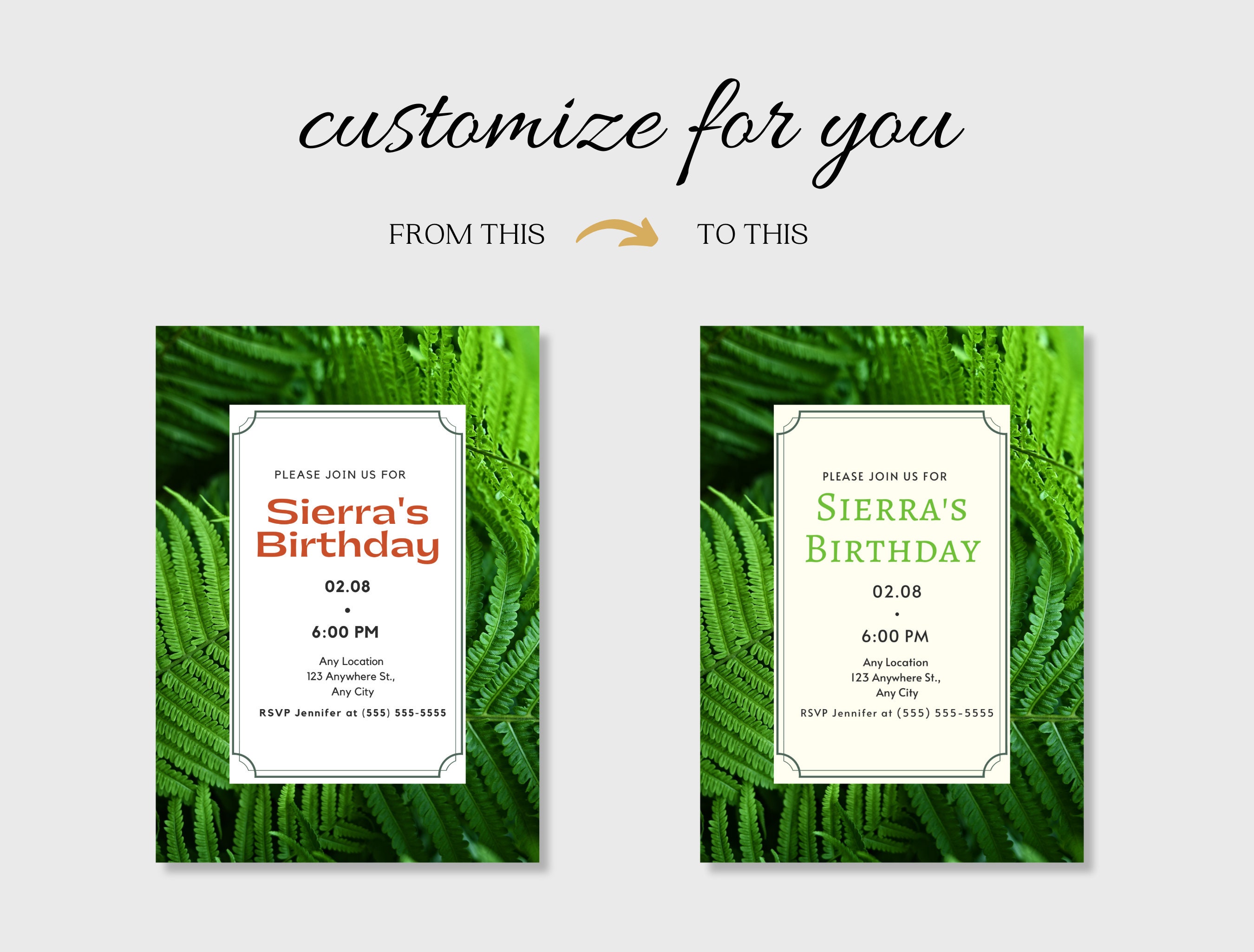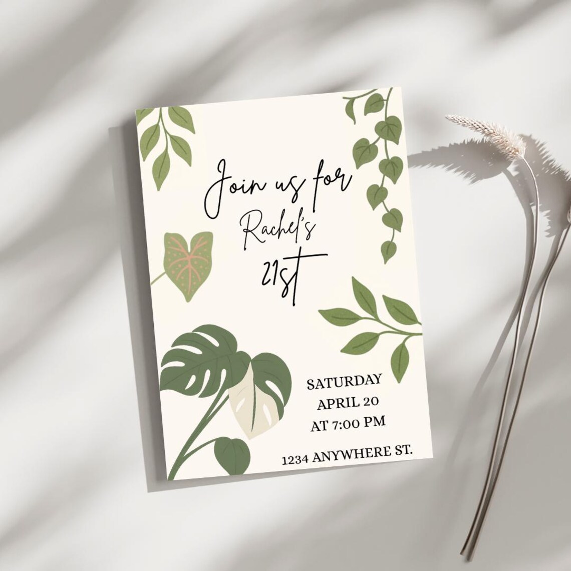 Plant Natural Party Invitation Template | Editable Canva Invite for Any ...