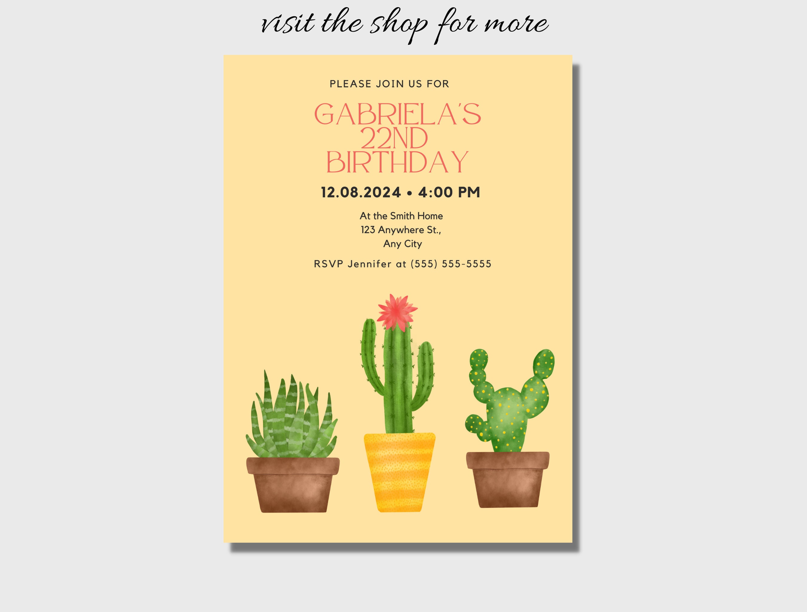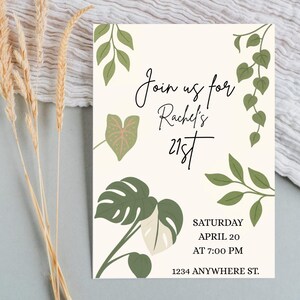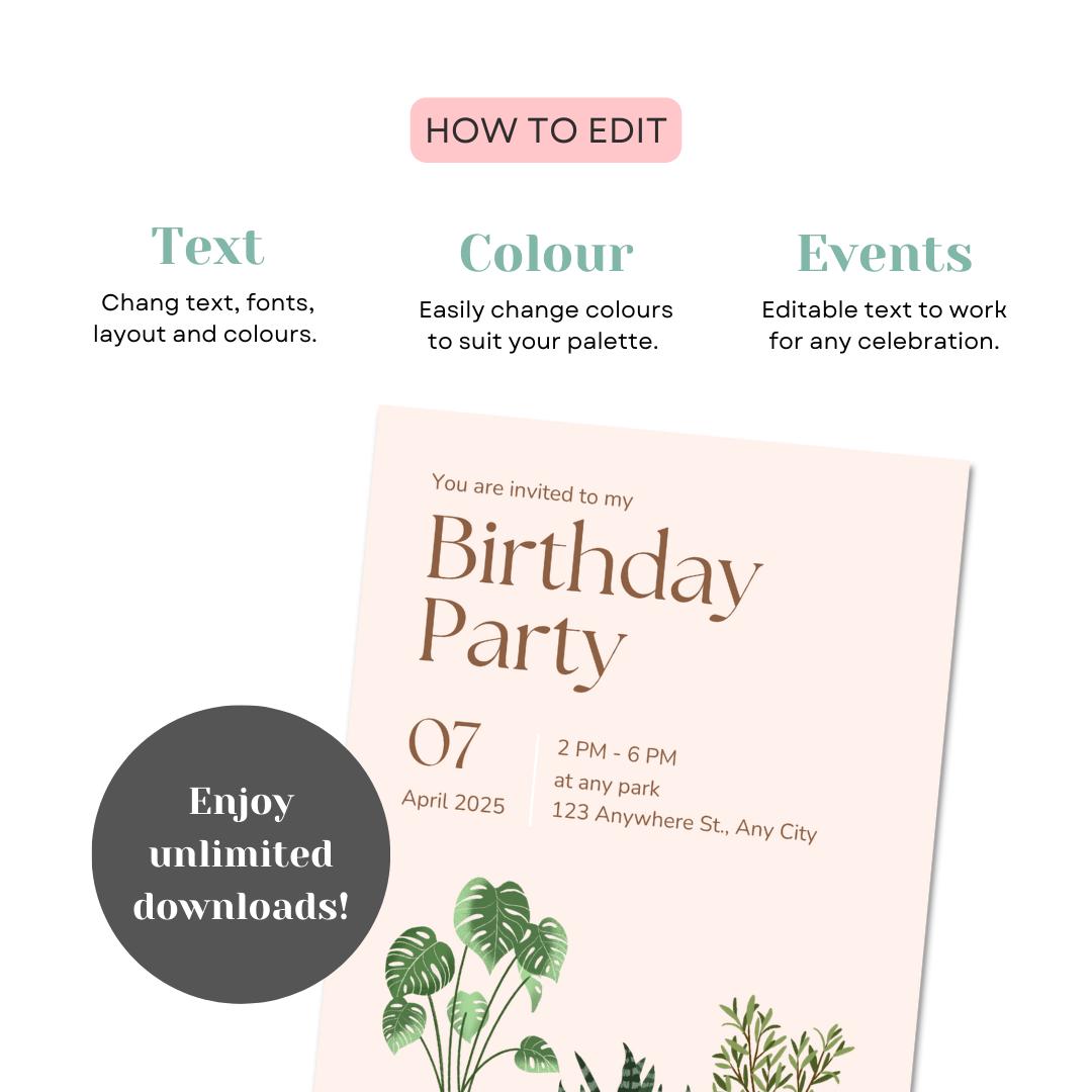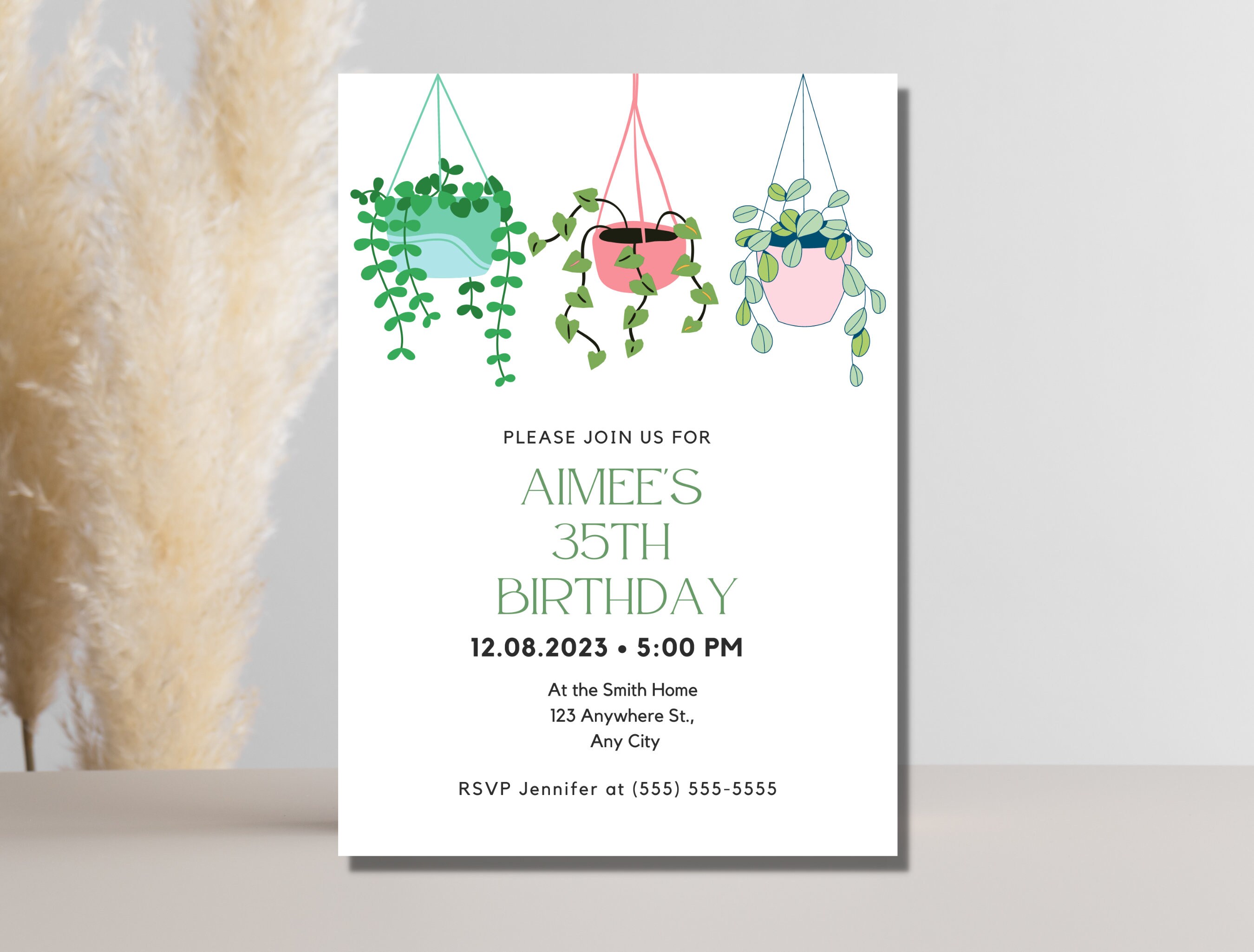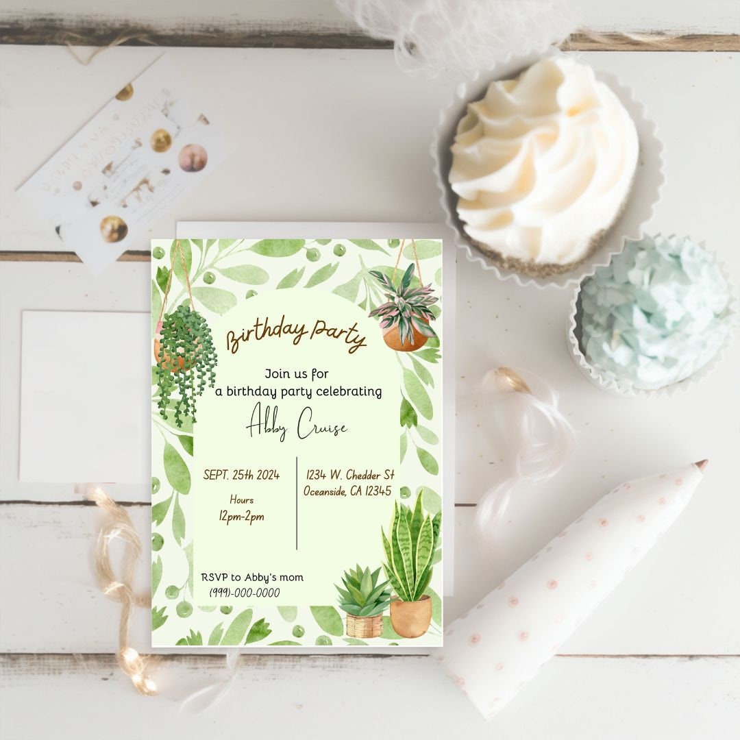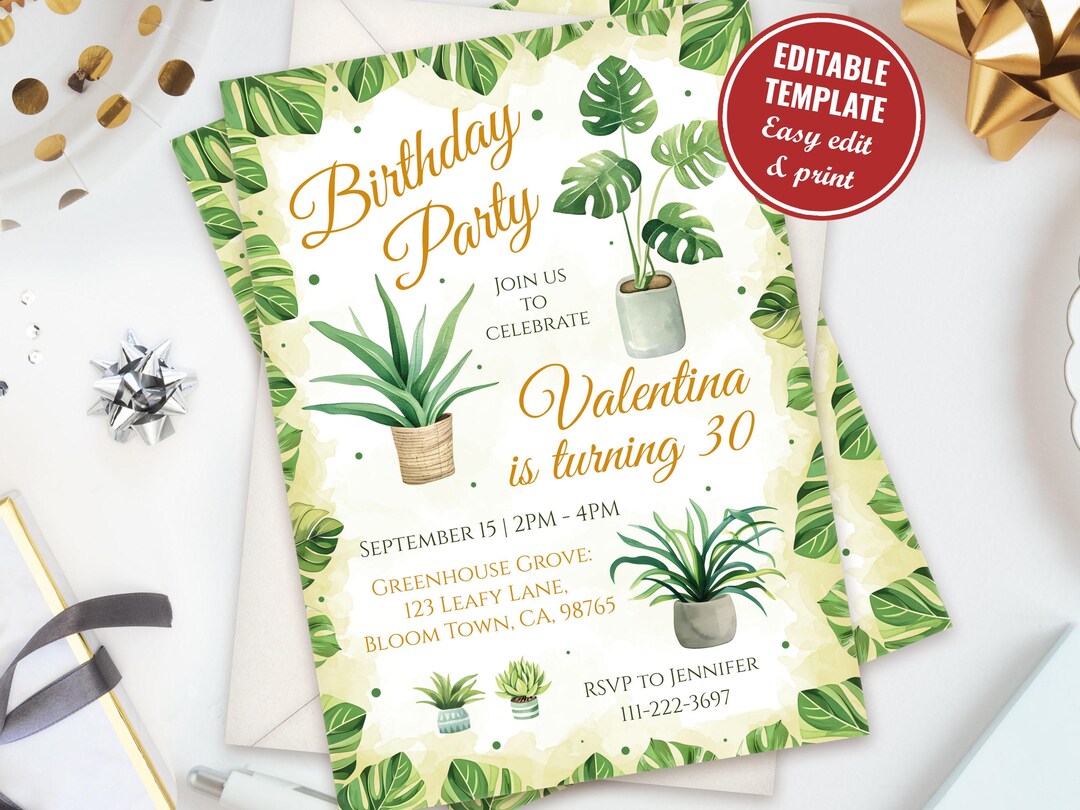 Editable Plant Invitation, Plant Lover Invitation, Birthday Invitation ...