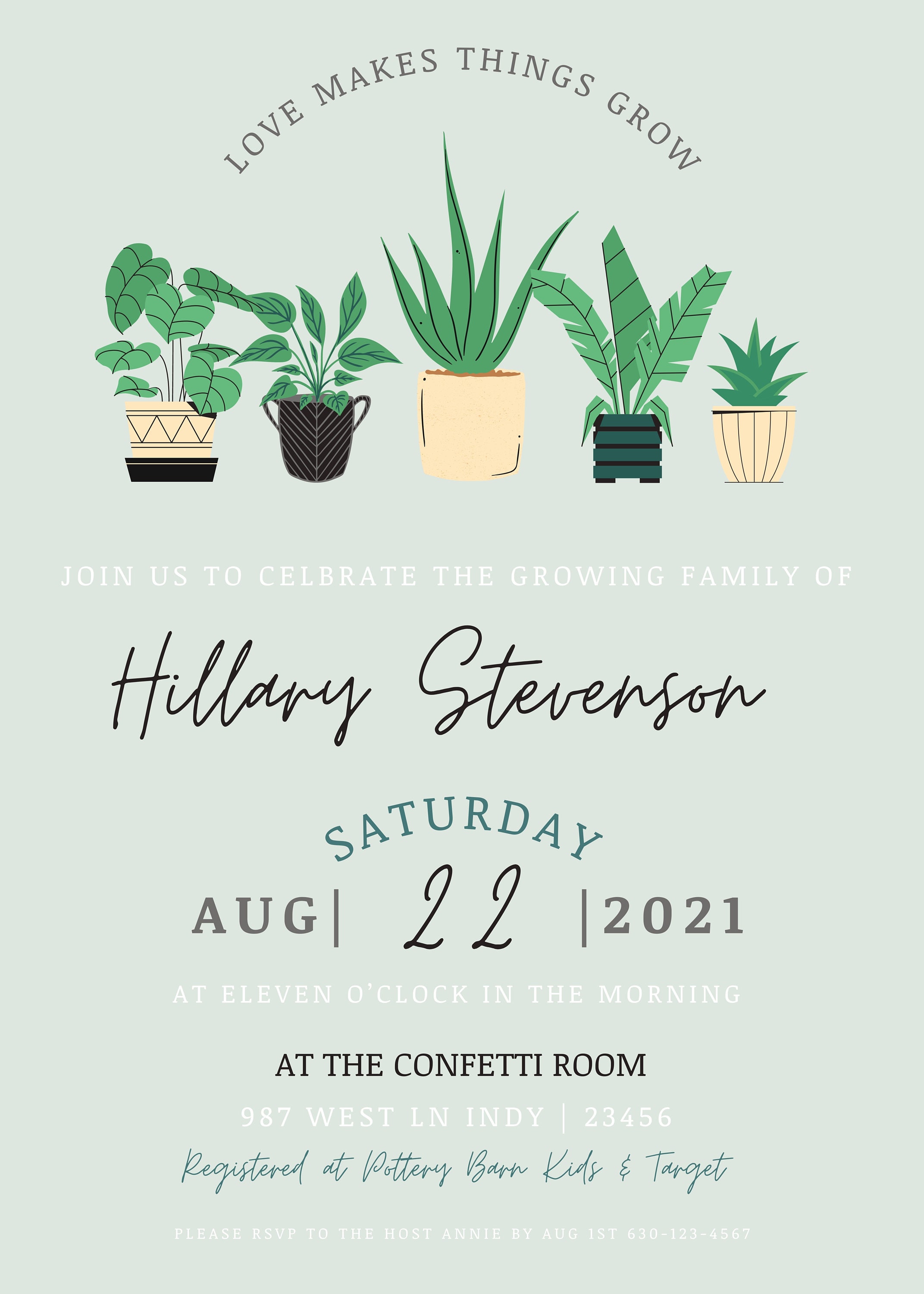 Baby Shower Invitation, Printable Indoor Plant Invite, Potted Plants ...