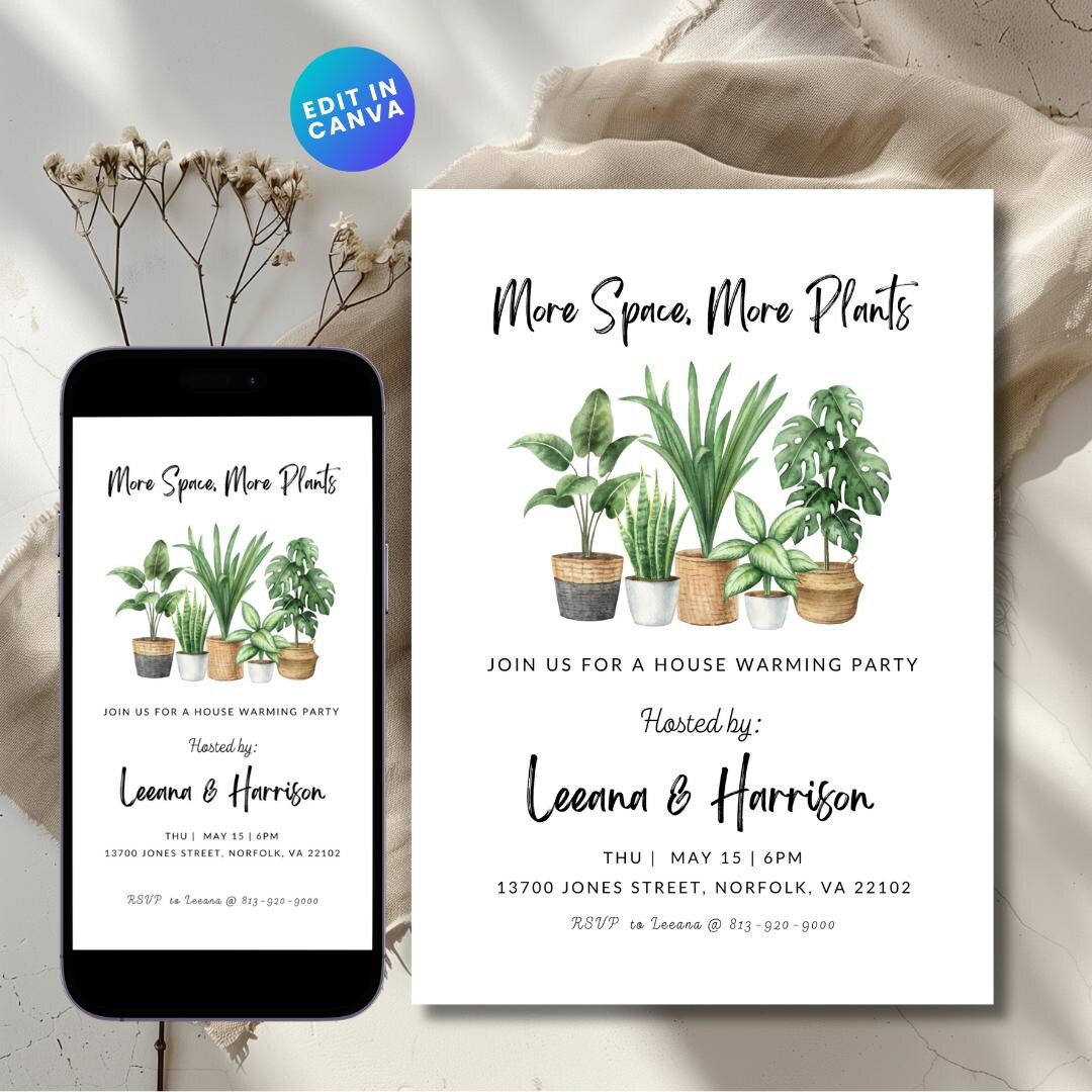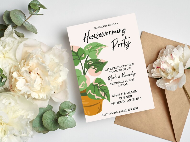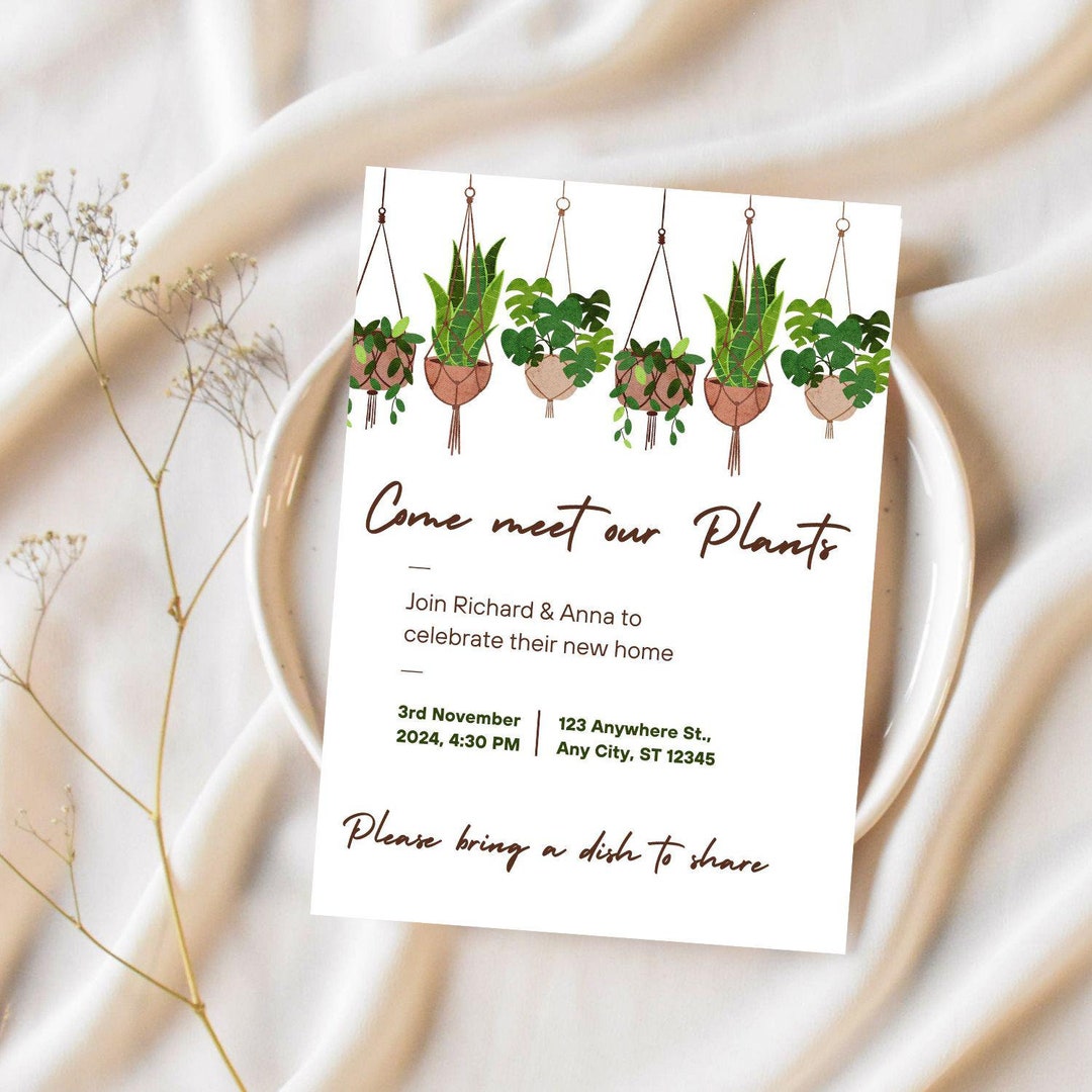 House Warming Party Invitation, Editable Home Sweet Home Plant ...