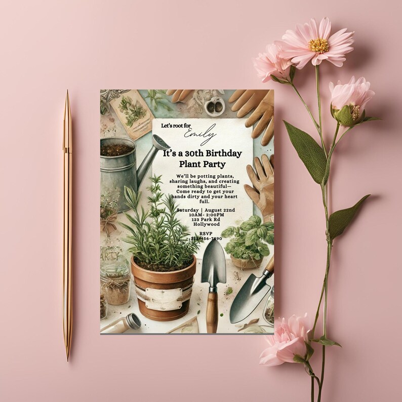 Plant Party Invitation | Garden Party | Birthday Plant Invite ...