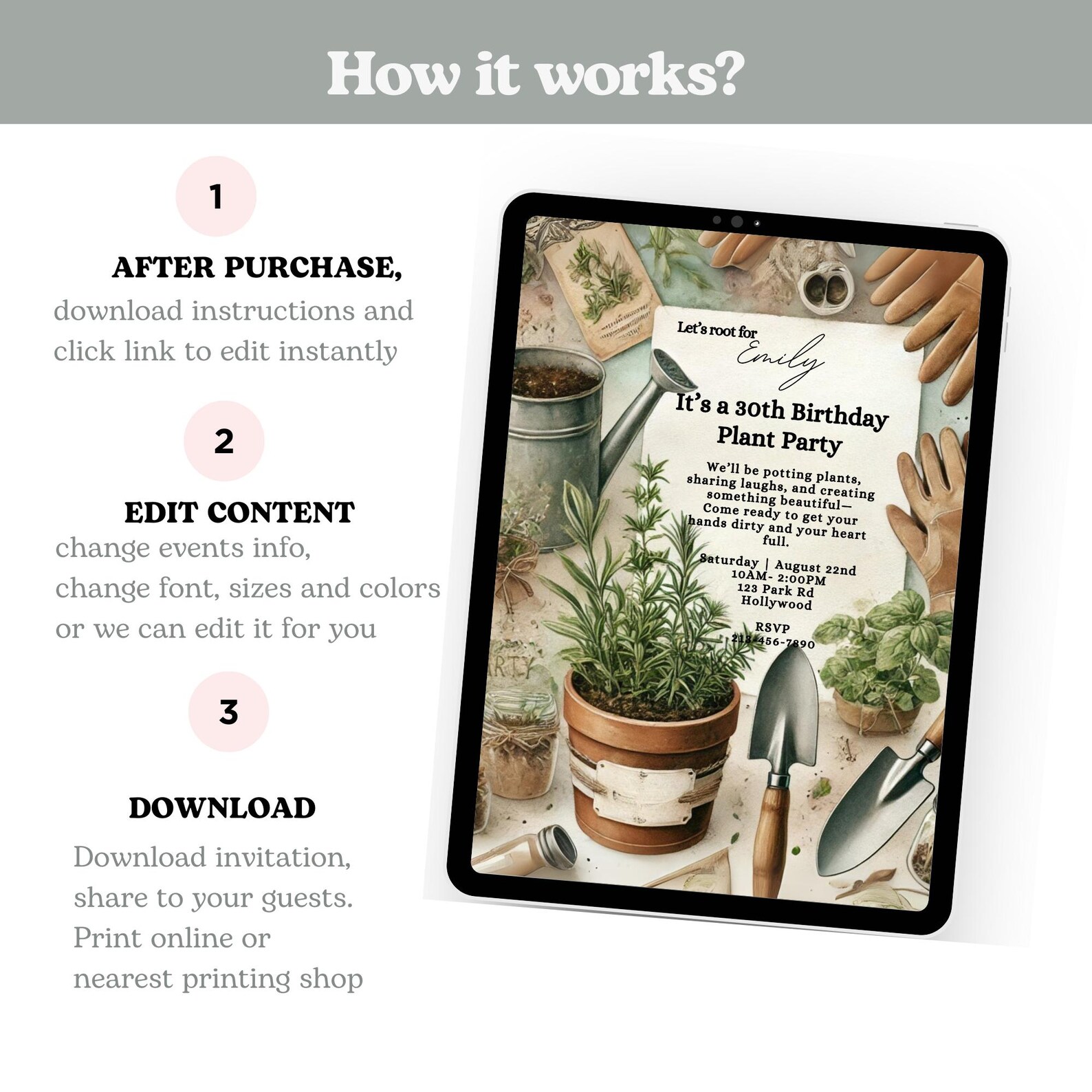 Editable Garden Party Invite, Gardening Birthday Invitation, Instant ...