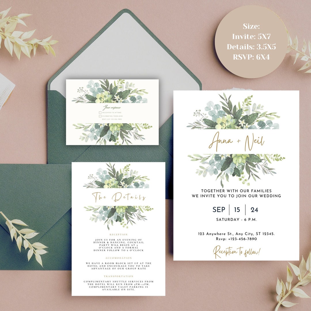 Plant Wedding Invitation Template Download, Digital Wedding Invitation ...