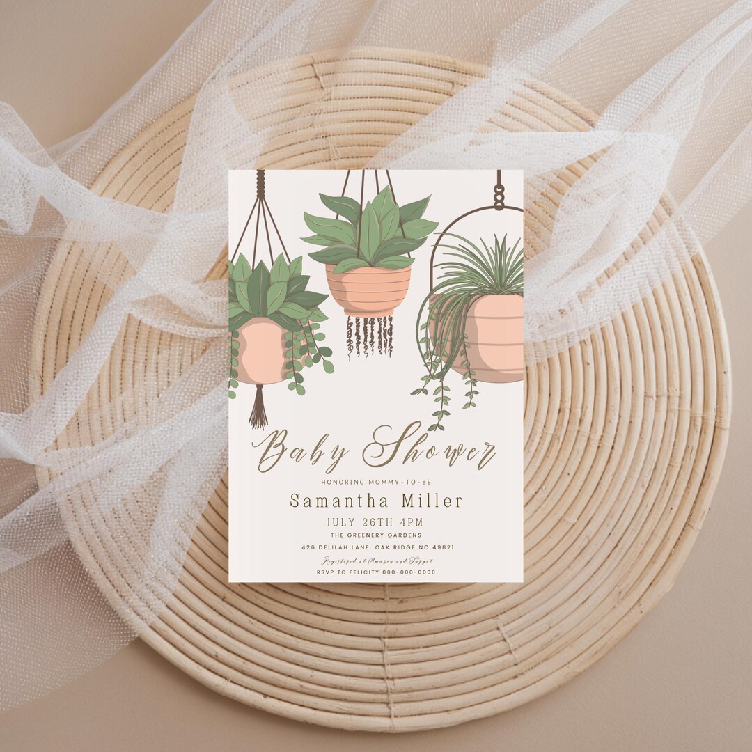 Hanging Plant Greenery Baby Shower Invite, Gender-neutral Botanical ...