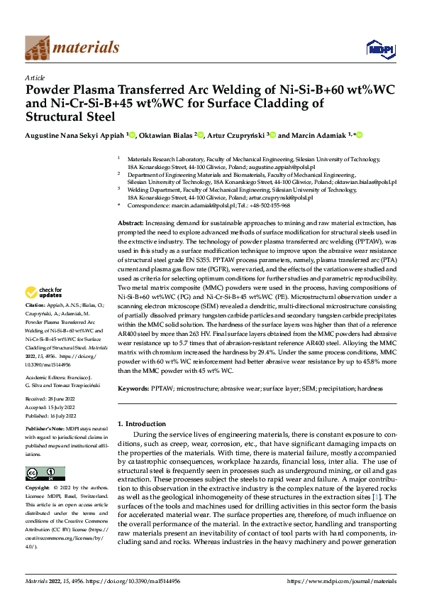 (PDF) Powder Plasma Transferred Arc Welding of Ni-Si-B+60 wt%WC and Ni ...
