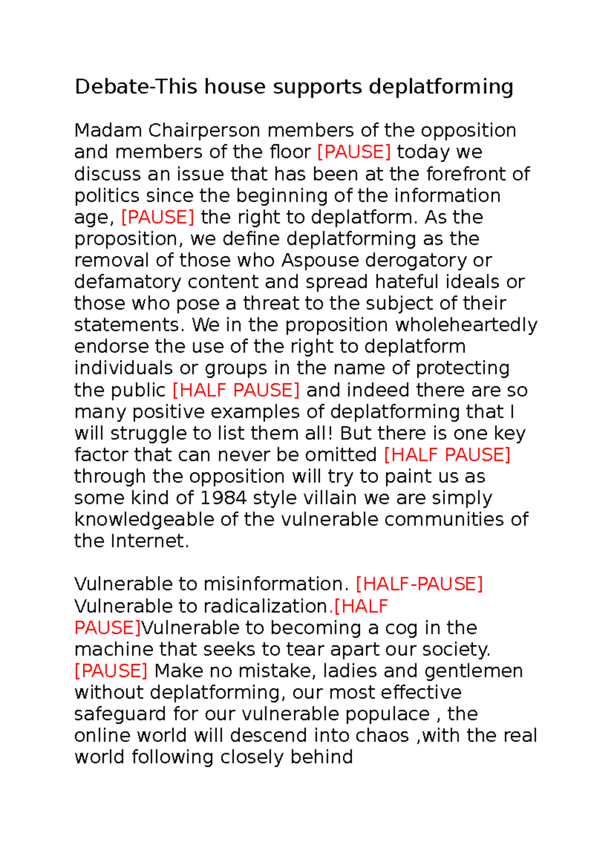 Debate on Deplatforming: Protecting Society from Misinformation - Studocu