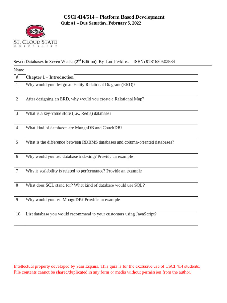 CSCI414 Platform Based Development Quiz1- Spring 2022 (1) | PDF