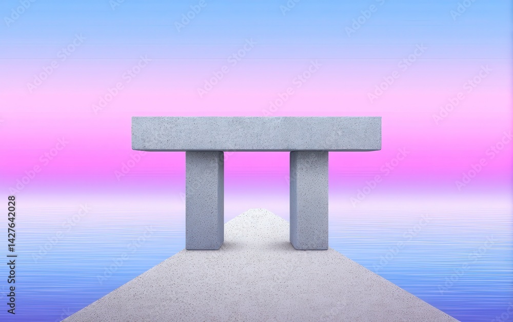 A minimalistic design showcases a multi-tiered platform, its vibrant ...