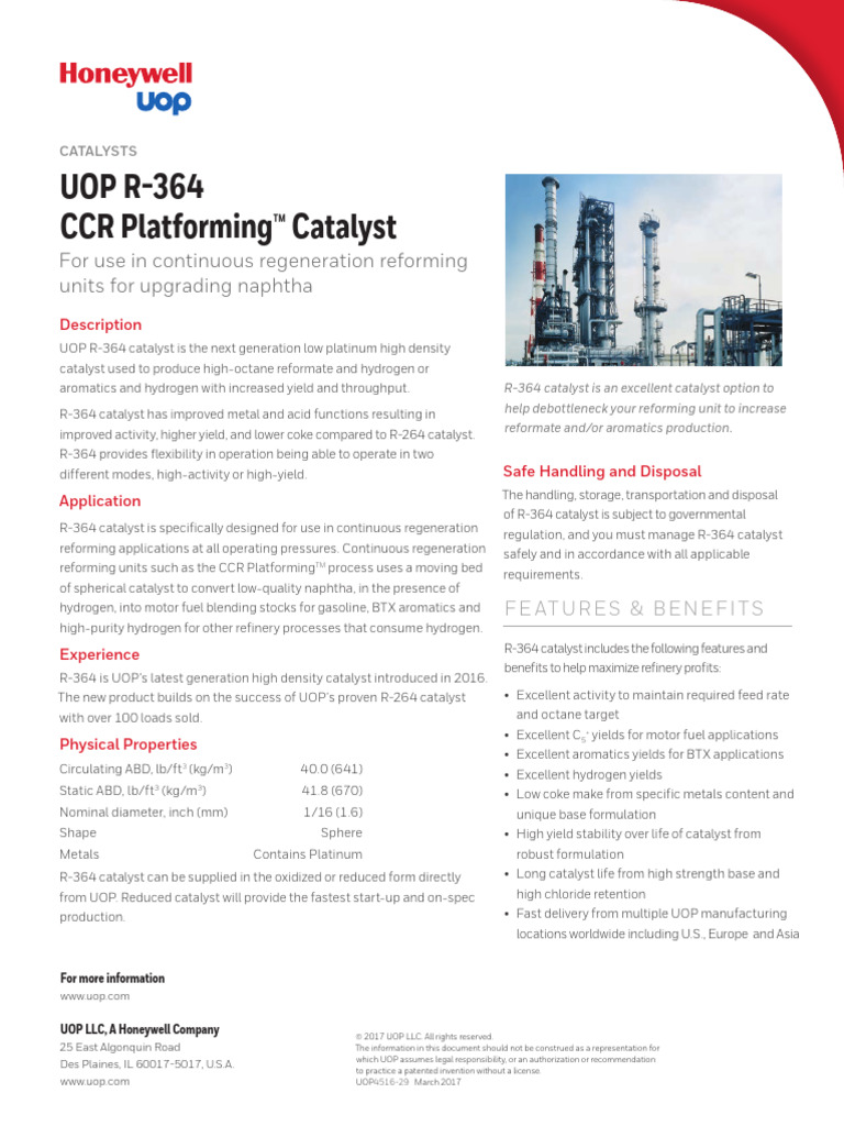 Honeywell Uop R 364 Platforming Catalyst Datasheet | PDF | Materials ...