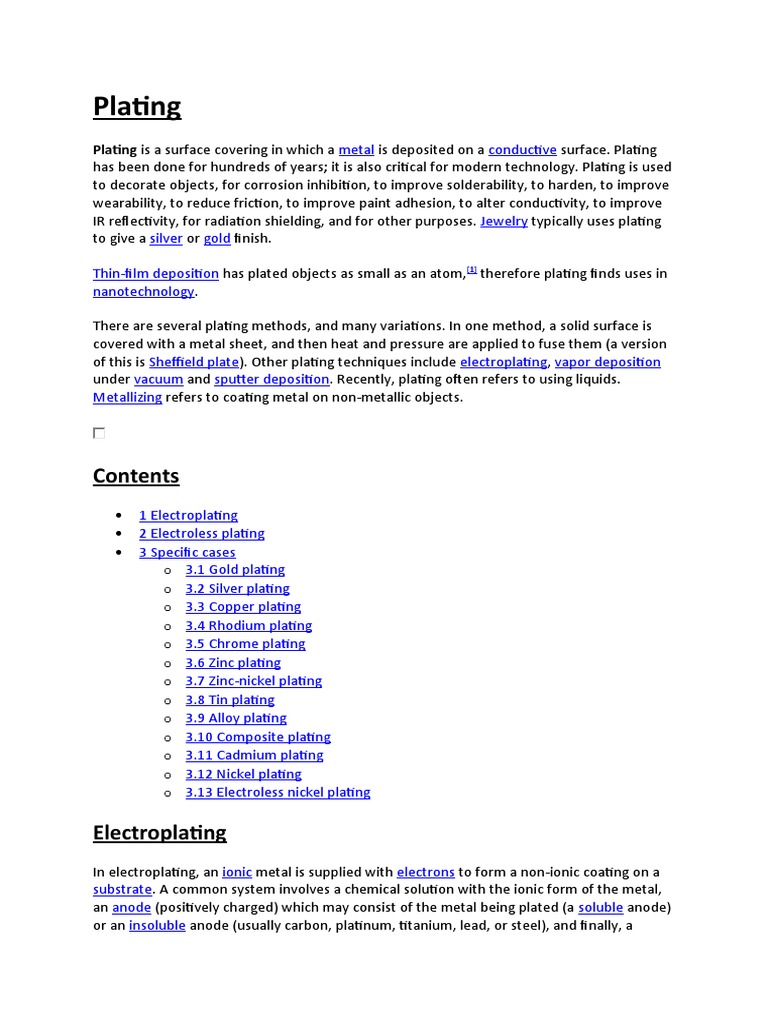 Plating: Plating Is A Surface Covering in Which A | PDF | Atoms | Chemistry