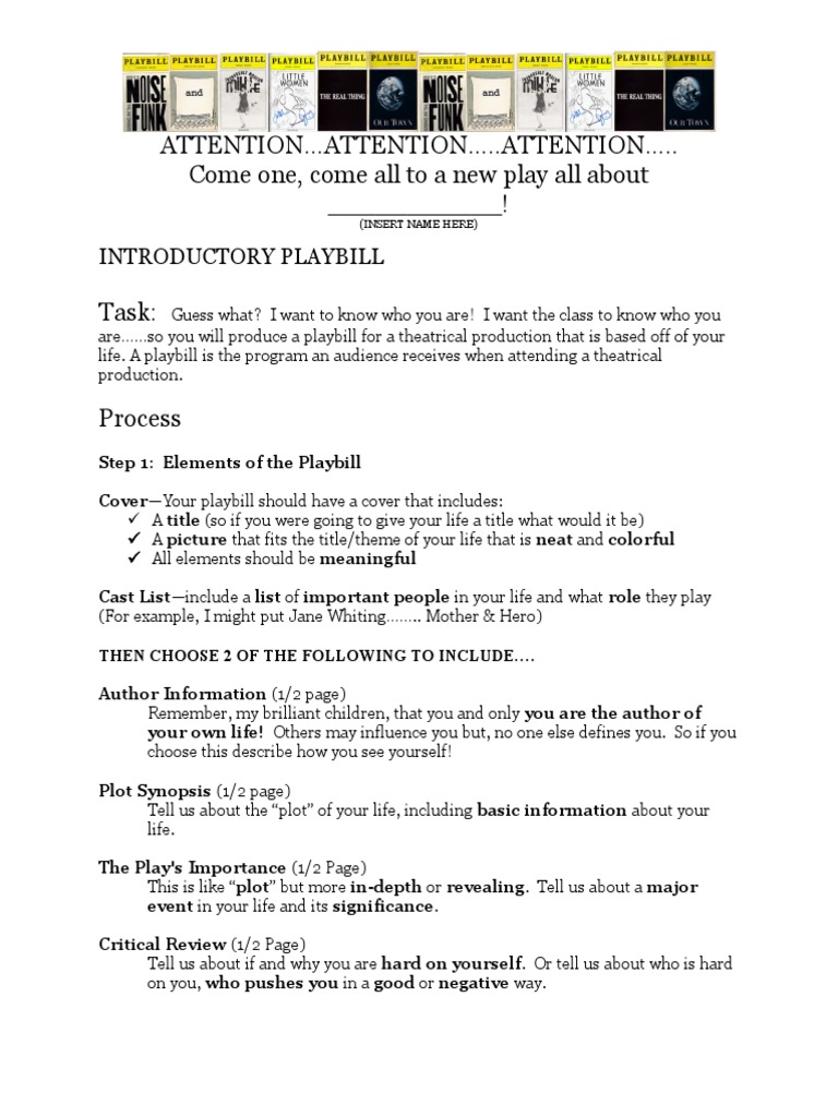 Drama Playbill Project by HappyEdugator | Teachers Pay Teachers