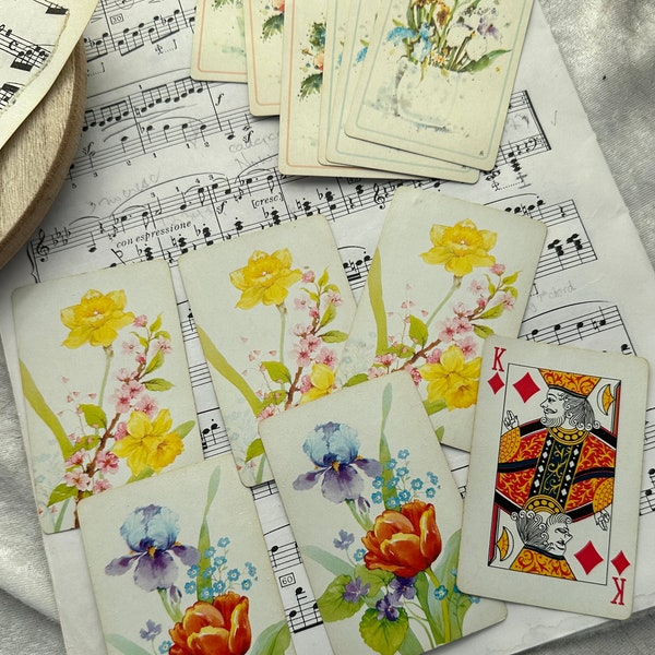 12 Assortment of Floral Playing Cards spring Colors - Etsy
