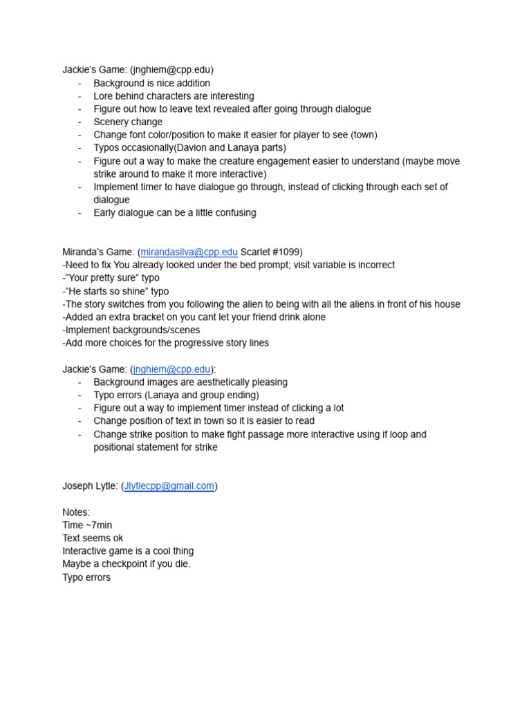 Play-Test Feedback Form--Please Complete after every play-through. One ...