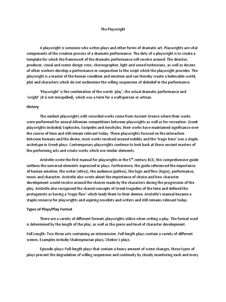 Understanding the Role of the Modern Playwright in Theatre | Course Hero