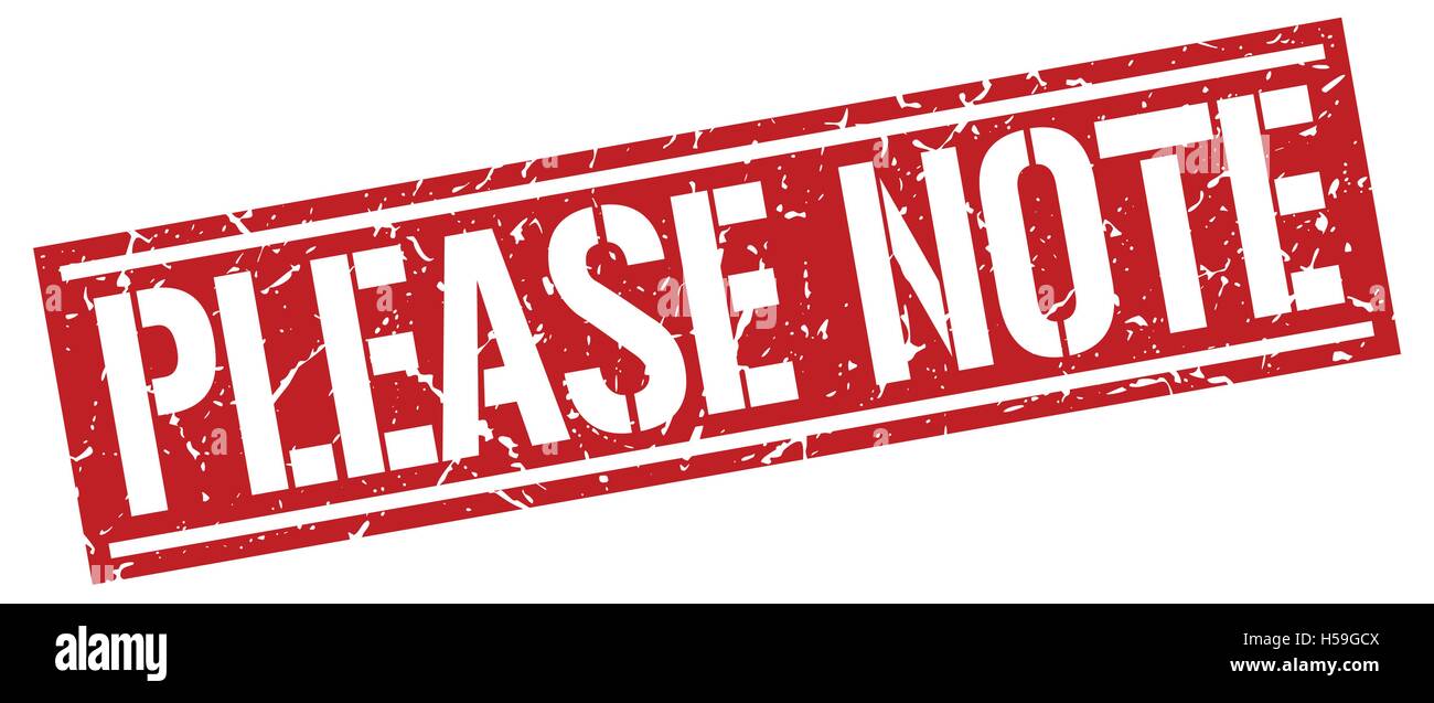 PLEASE NOTE.. red Rubber Stamp over a white background Stock Photo - Alamy