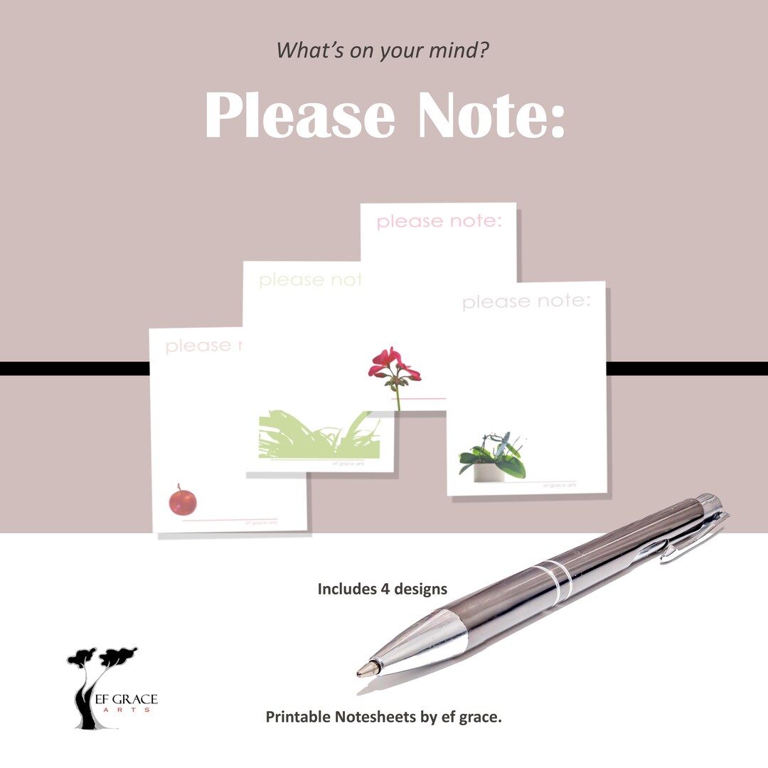 Please Note- Printable Note Sheet Stationery by EF Grace Arts - 4 ...