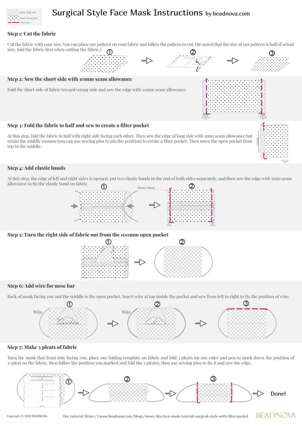 Free Pleated Face Mask Pattern & Tutorial - with Filter Pocket - Beadnova