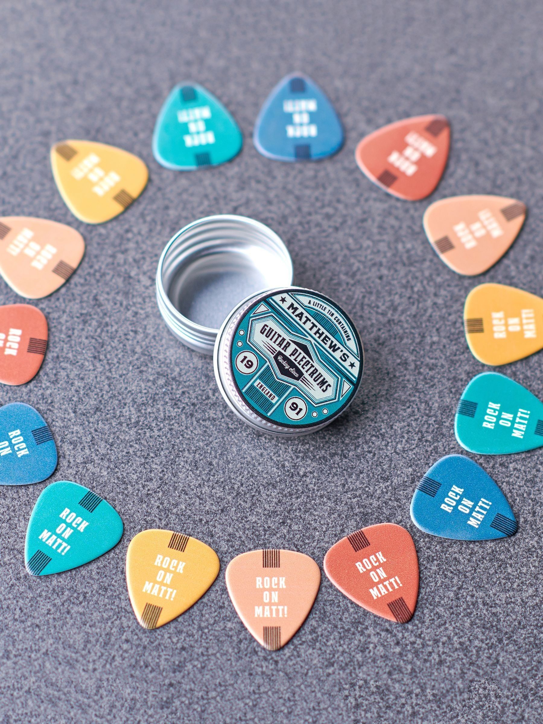 Buy Personalised Colourful Guitar Plectrums In Tin by Oakdene from the ...