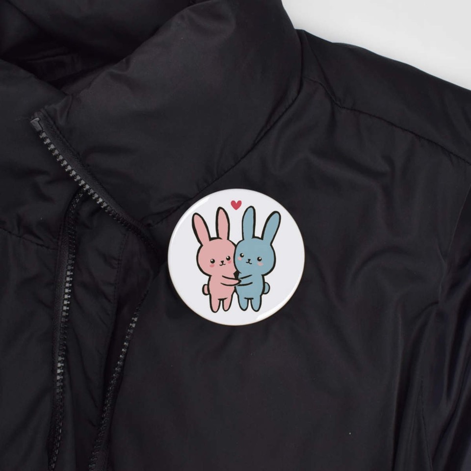 'Two Bunnies in Love with Heart' Button Pin Badges (BB055664) | eBay UK