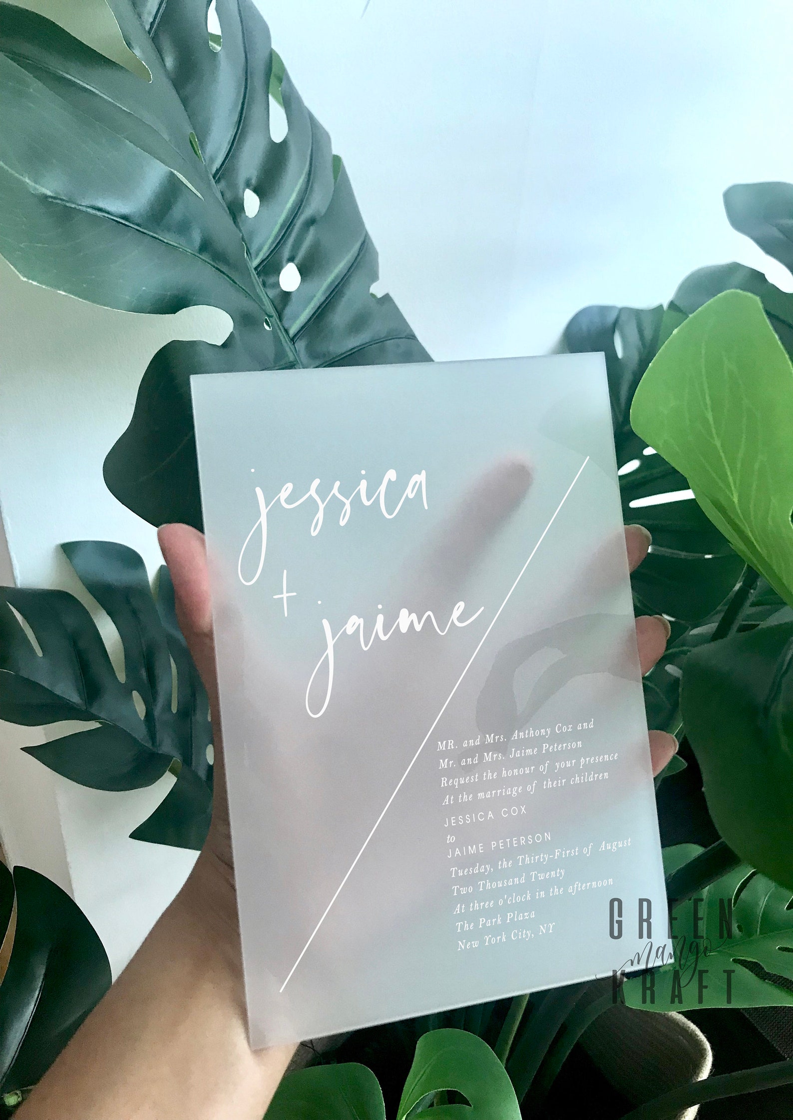 FROSTED Acrylic WEDDING INVITATIONS Calligraphy Plexiglass | Etsy