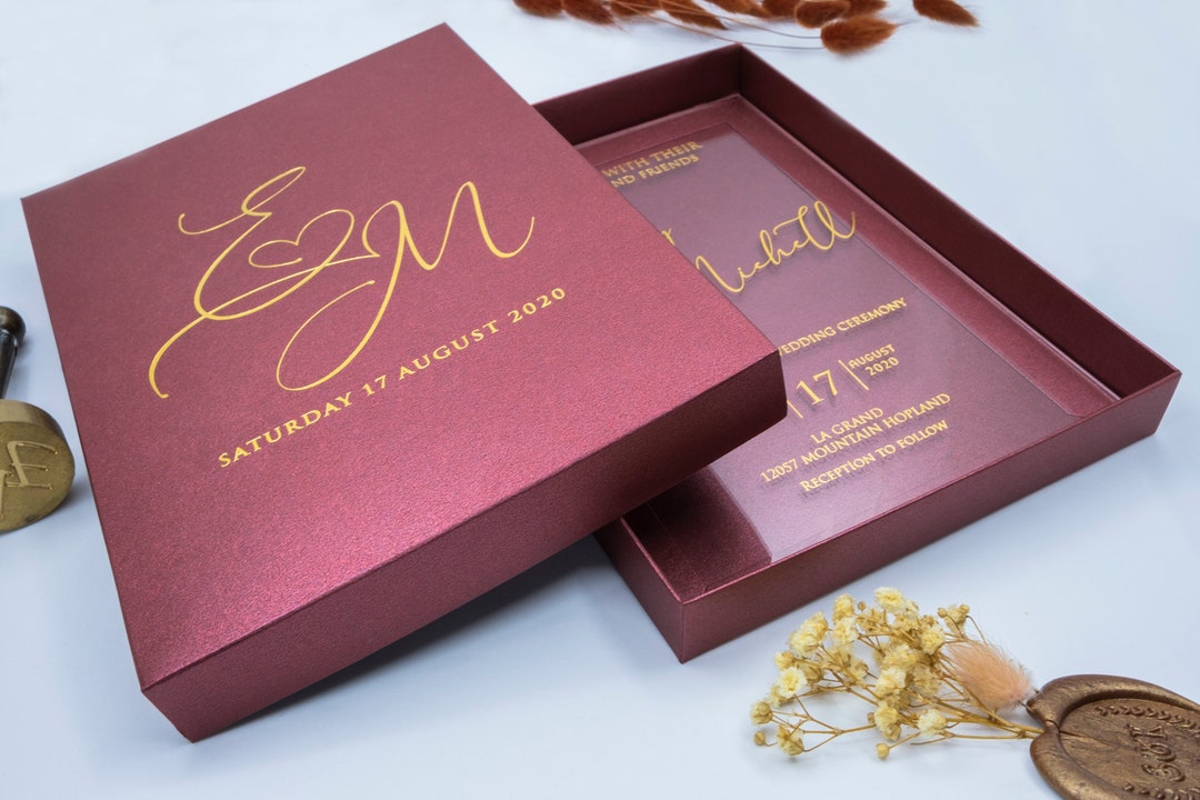 Acrylic Wedding Invitations, Red Boxes, Plexiglass Invites, Clear ...