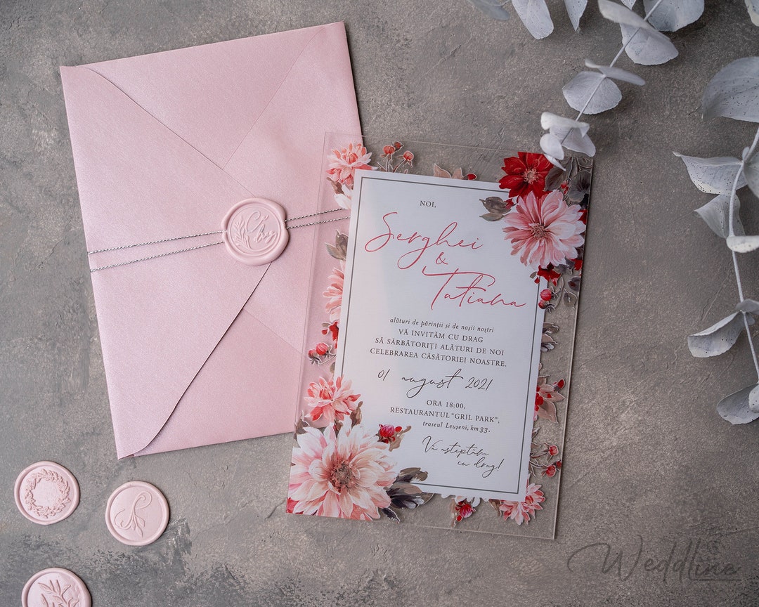 Wedding Invitation UV Printed on Plexiglass With Dahlia Design, Custom ...