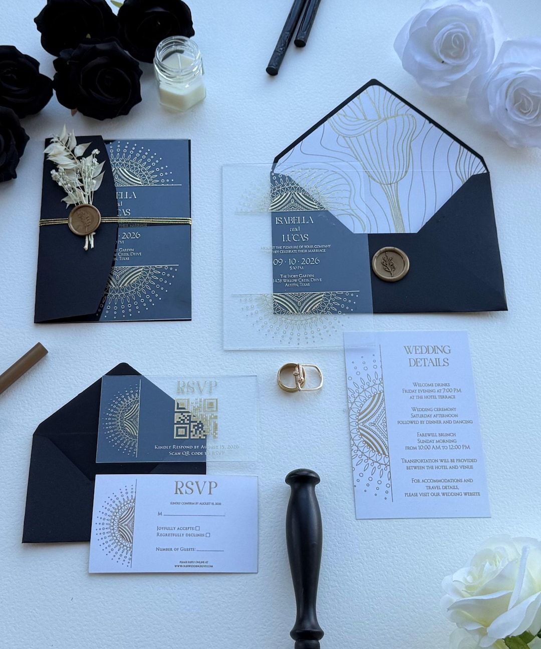 Clear Acrylic Wedding Invitation Laser Cut Plexiglass Black White Gold ...