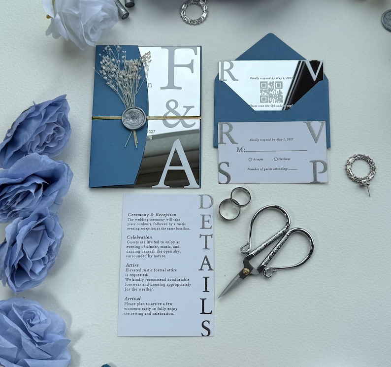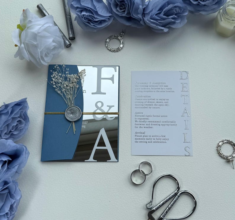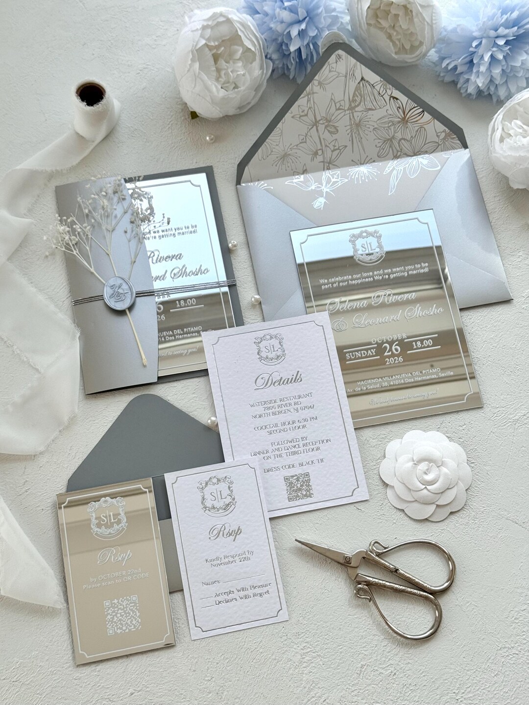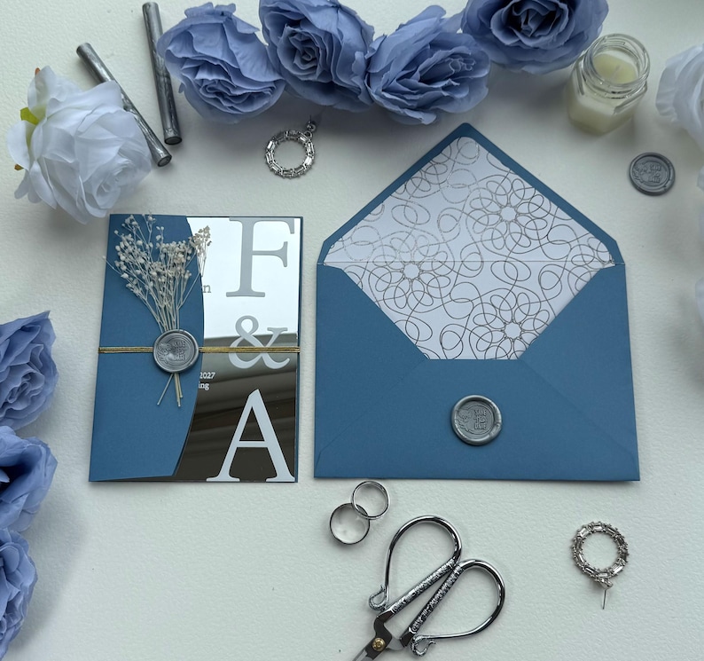 Acrylic Wedding Invitation Silver Details, Dusty Blue Envelope, Custom ...