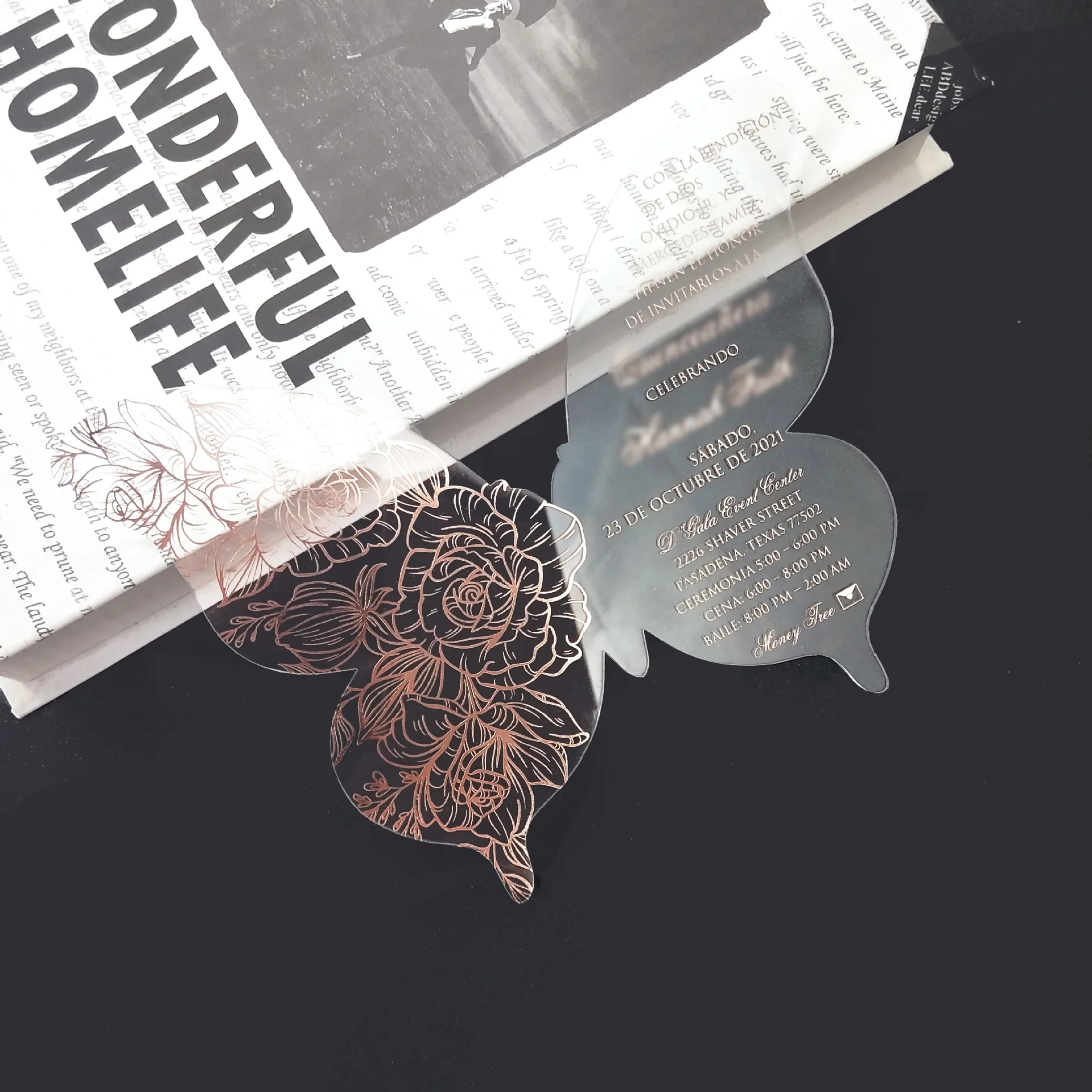 50pcs, Custom Design Invitation, Wedding Invitation, Roses Acrylic ...